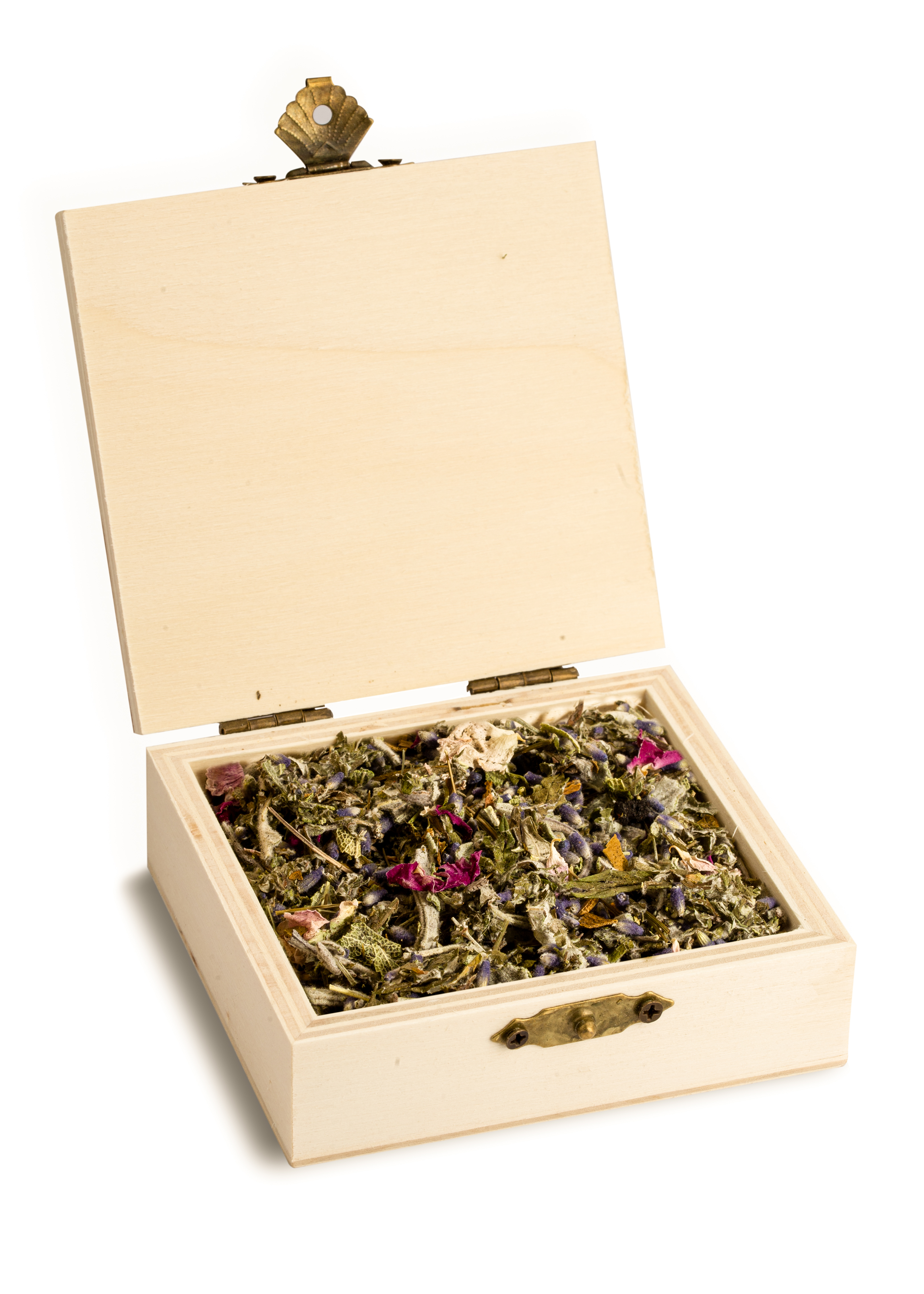 Bestandteile: Beifuß, Salbei, Mistelkraut, Mariengras, Lavendel, Birke, Rosenblätter, Storax